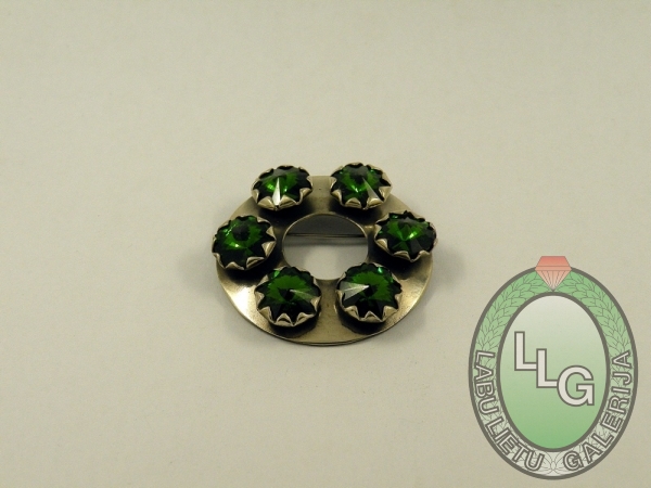 Lielvārde, Lēdmane- d.40 mm, stikli 6x10 mm, zaļi- oksidēta, pulēta